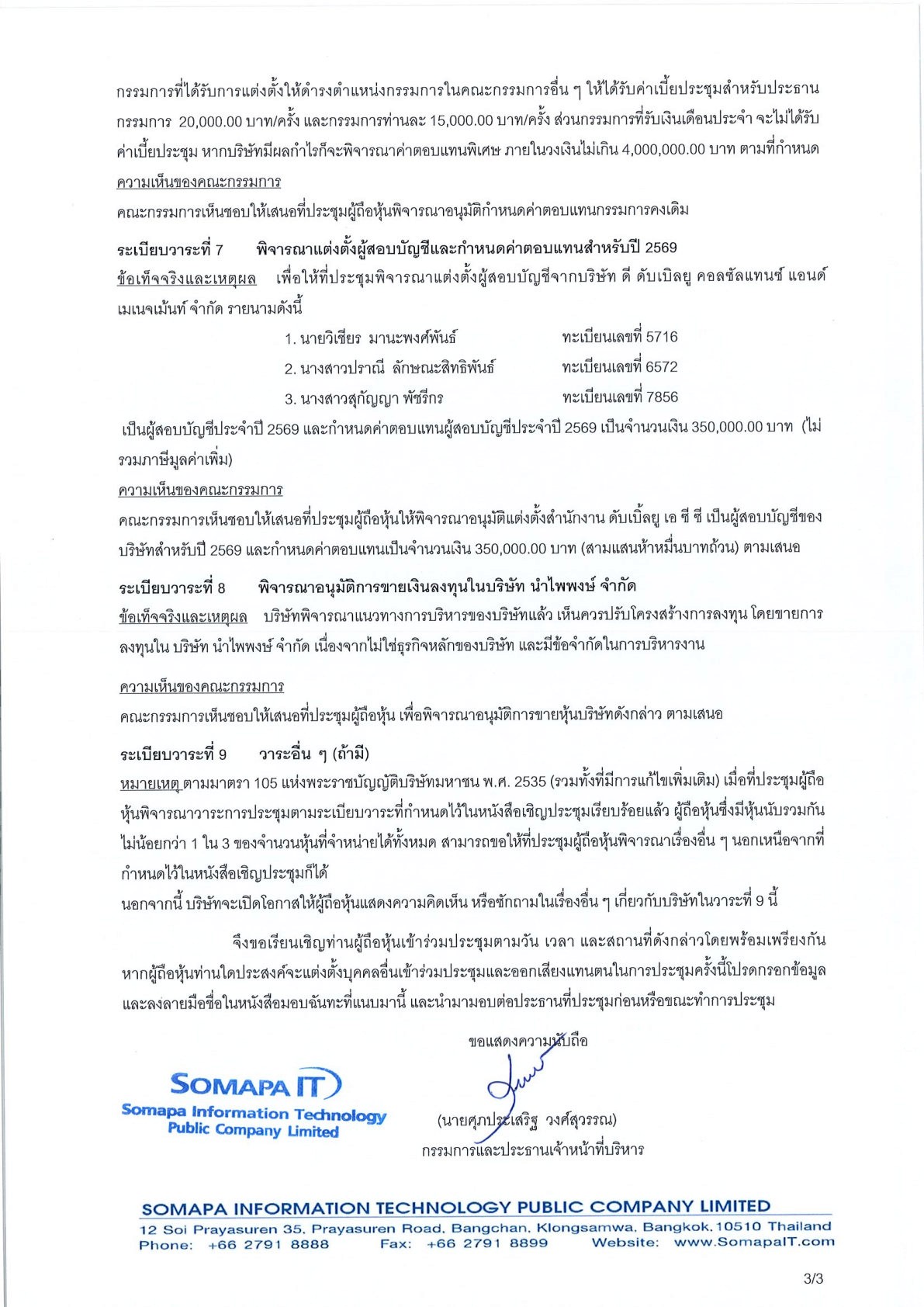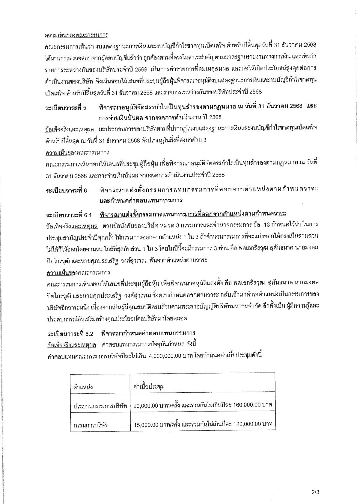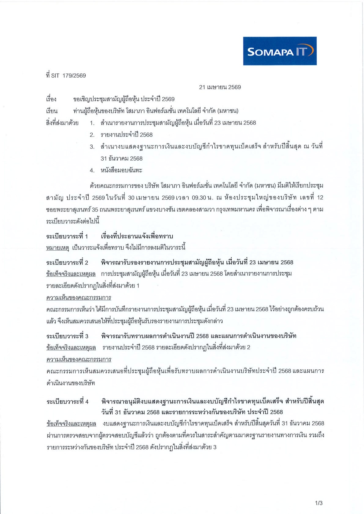 ขอเชิญประชุมสามัญผู้ถือหุ้นประจำปี 2569